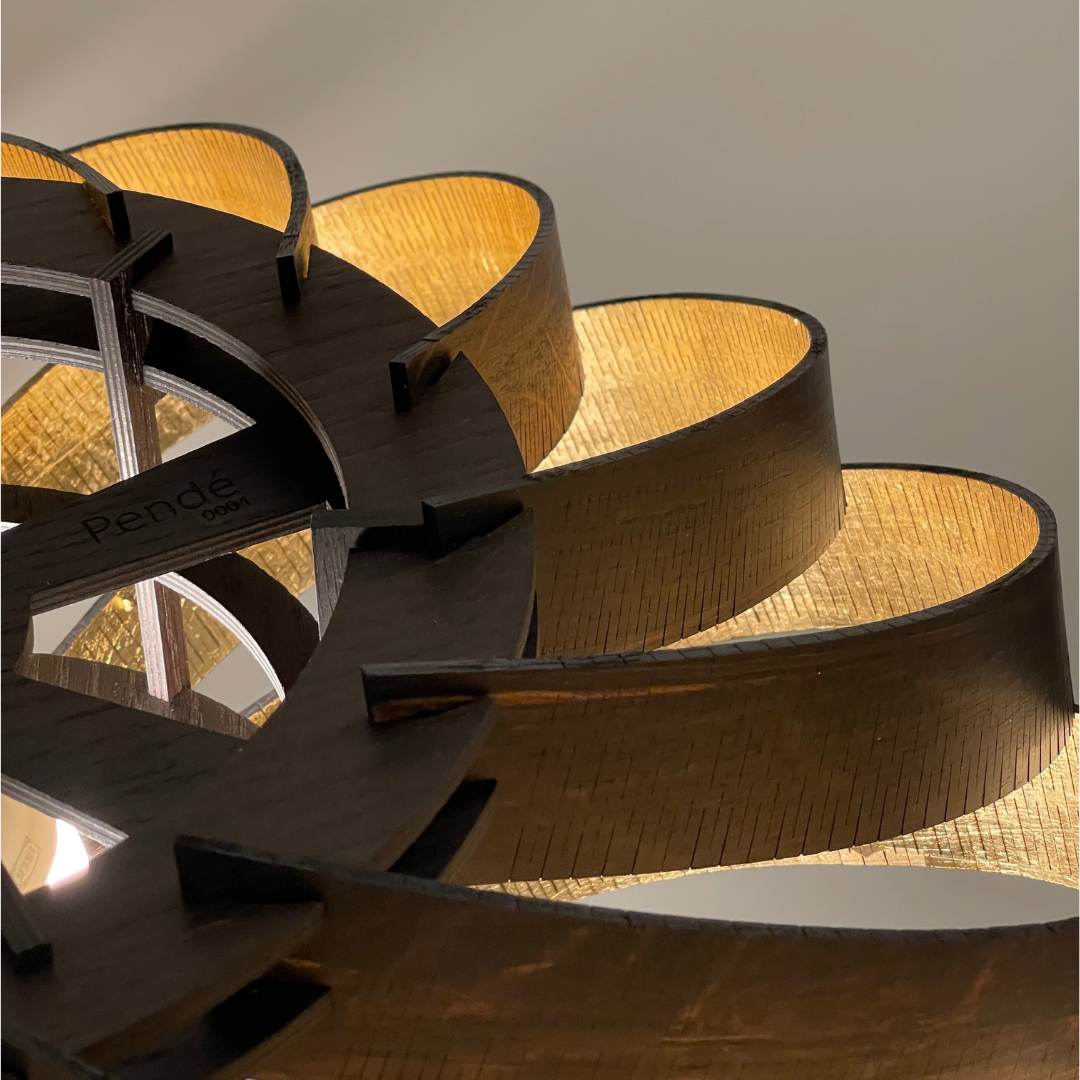 Opdag elegancen med Dahlia  loftslampe i røget egetræ.